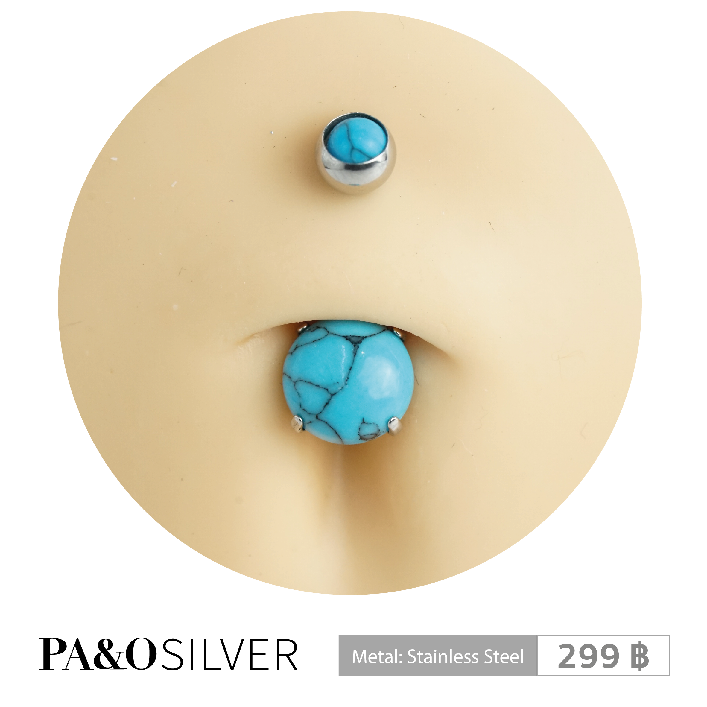 ต่างหูแป้น – หินสี พลอยสี Onyx หรือTurquoise